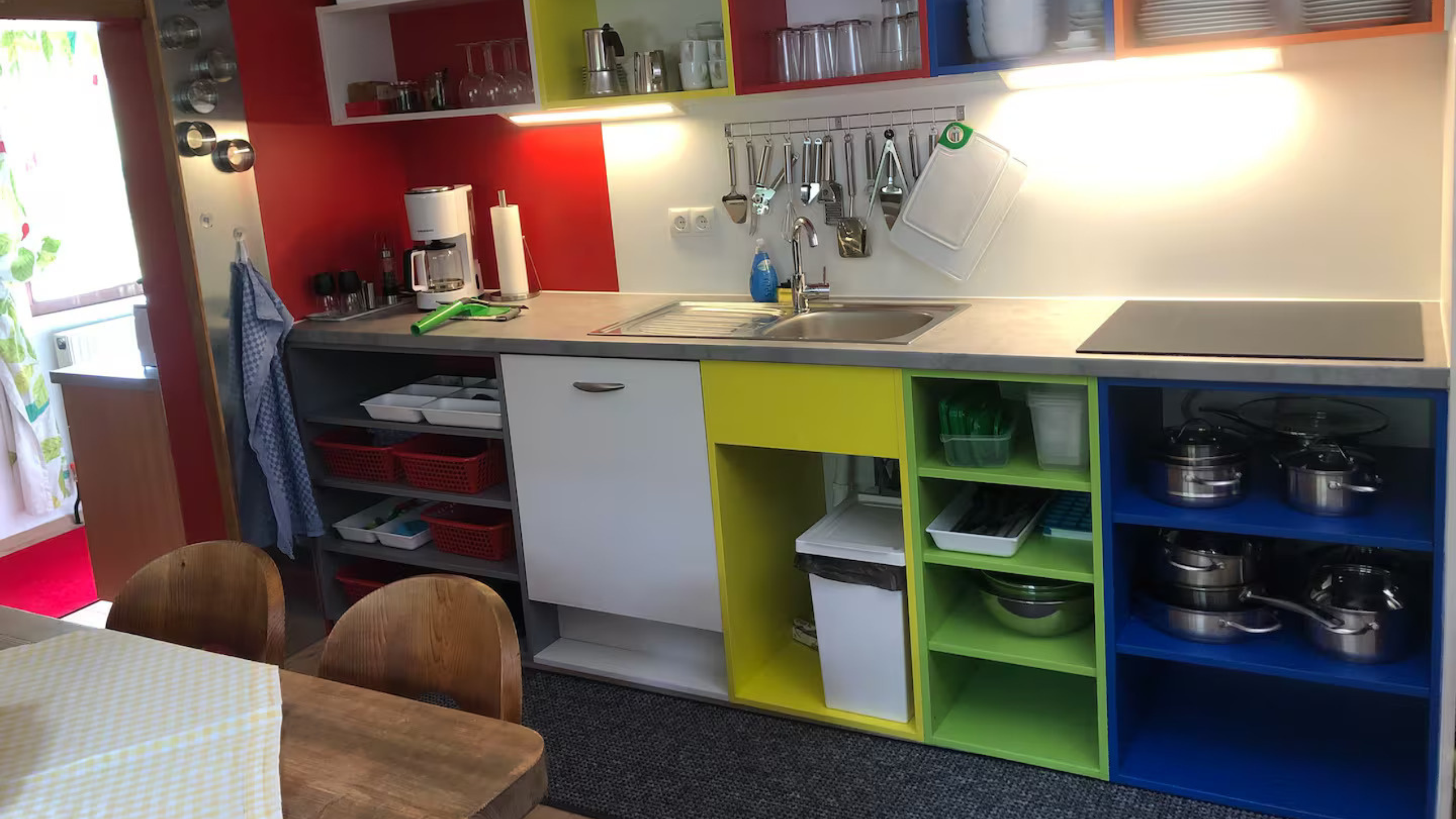 - Grundausstattung: Handtücher, Bettwäsche, Toilettenpapier, Seife, Töpfe, Pfannen, Öl, Salz, Pfeffer, Geschirr